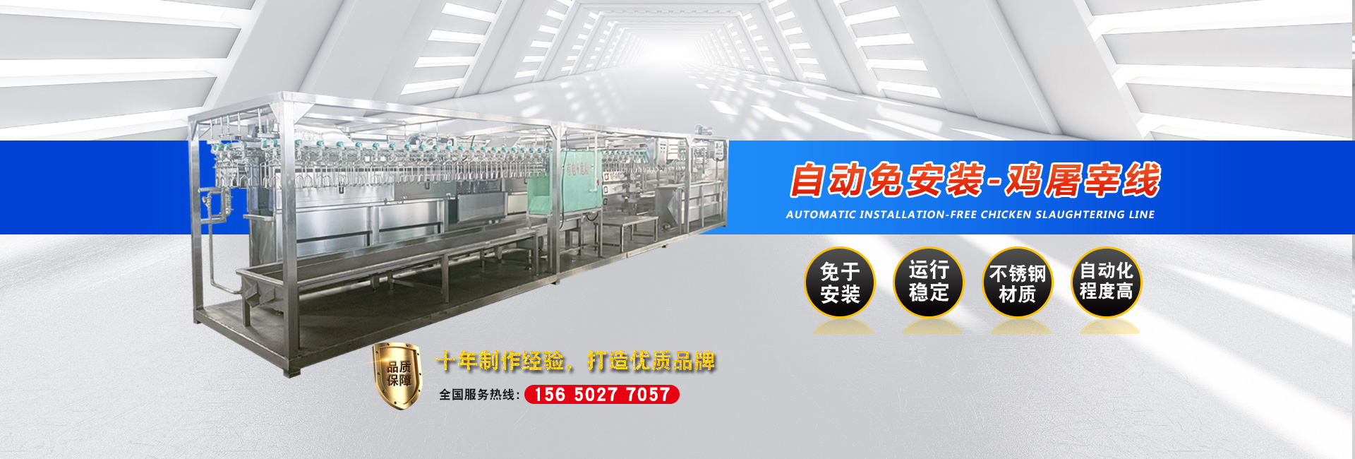 公司長期與國內(nèi)外屠宰加工企業(yè)合作,走引進——消化——創(chuàng)新和自主研發(fā)相結(jié)合的道路,在國內(nèi)外同類產(chǎn)品的基礎(chǔ)上,不斷更新和改造。公司主要設(shè)備有:A字型立式脫毛機、臥式脫毛機、強力噴淋機、松毛機、浸燙池、螺旋預(yù)冷機、禽籠清洗機、電暈機、兔扯皮機、兔割前爪/后爪機、剝胗機、自動洗鉤機、螺旋燙爪機、雞爪脫皮機、分割輸送帶等屠宰用設(shè)備。其中,公司獨力發(fā)明生產(chǎn)設(shè)計的“電動調(diào)節(jié)脫毛機”及“自動控水控溫浸燙池”順利通過知識產(chǎn)權(quán)局的實質(zhì)性審查。公司所生產(chǎn)的設(shè)備 可與國外同類產(chǎn)品配套使用,設(shè)備遠銷阿爾及利亞、澳大利亞等中東、非州等并建立了長期穩(wěn)定的合作關(guān)系。